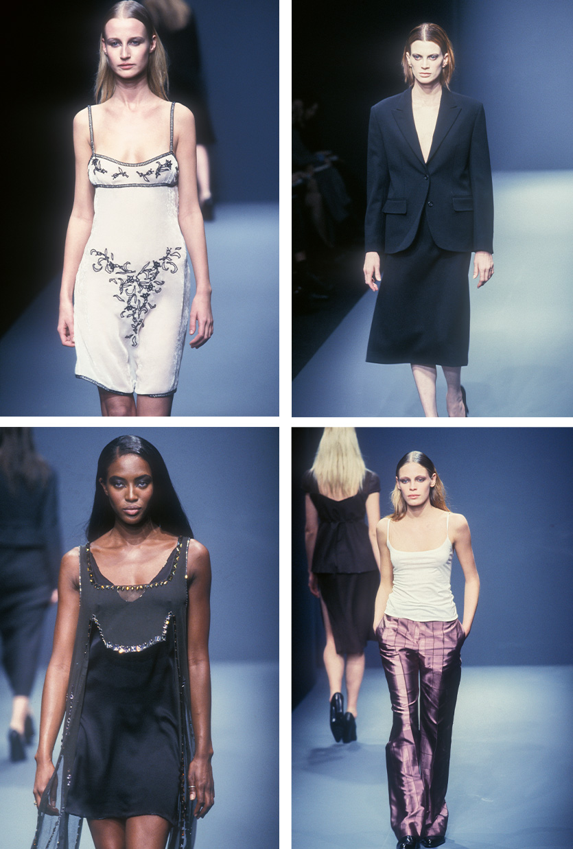 The two opposite poles of Prada’s oeuvre interact and complement one another. When Miuccia first listened to her instincts and wore Yves Saint Laurent to a demo, she could hardly have foreseen the confusion she would trigger. A confusion which carried the seeds for the first true look of the 21st century.